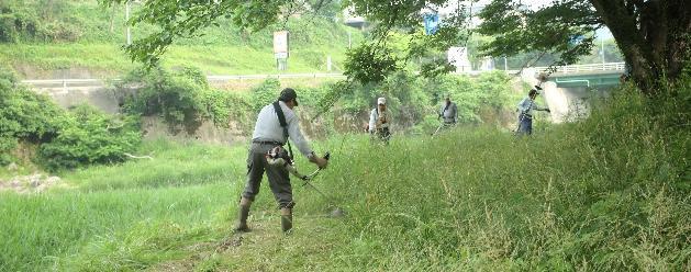 6月8日の早朝より平岩健康増進広場掛合野球場(市道郡下組線)の上・下地区に分かれて草刈り作業を行いました。